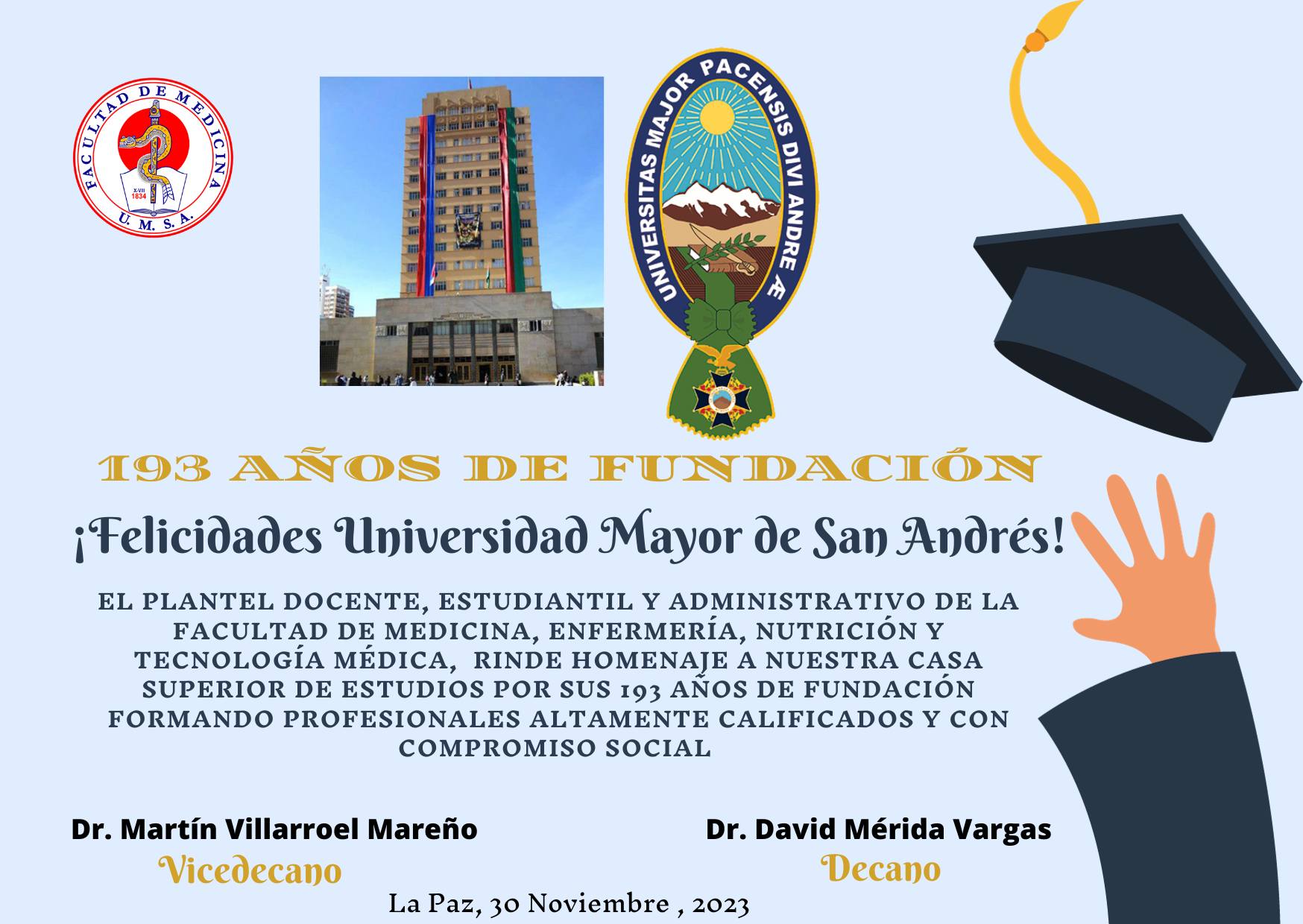 A la Universidad Mayor de San Andrés UMSA en sus 193 años de fundación. - FMENT-UMSA