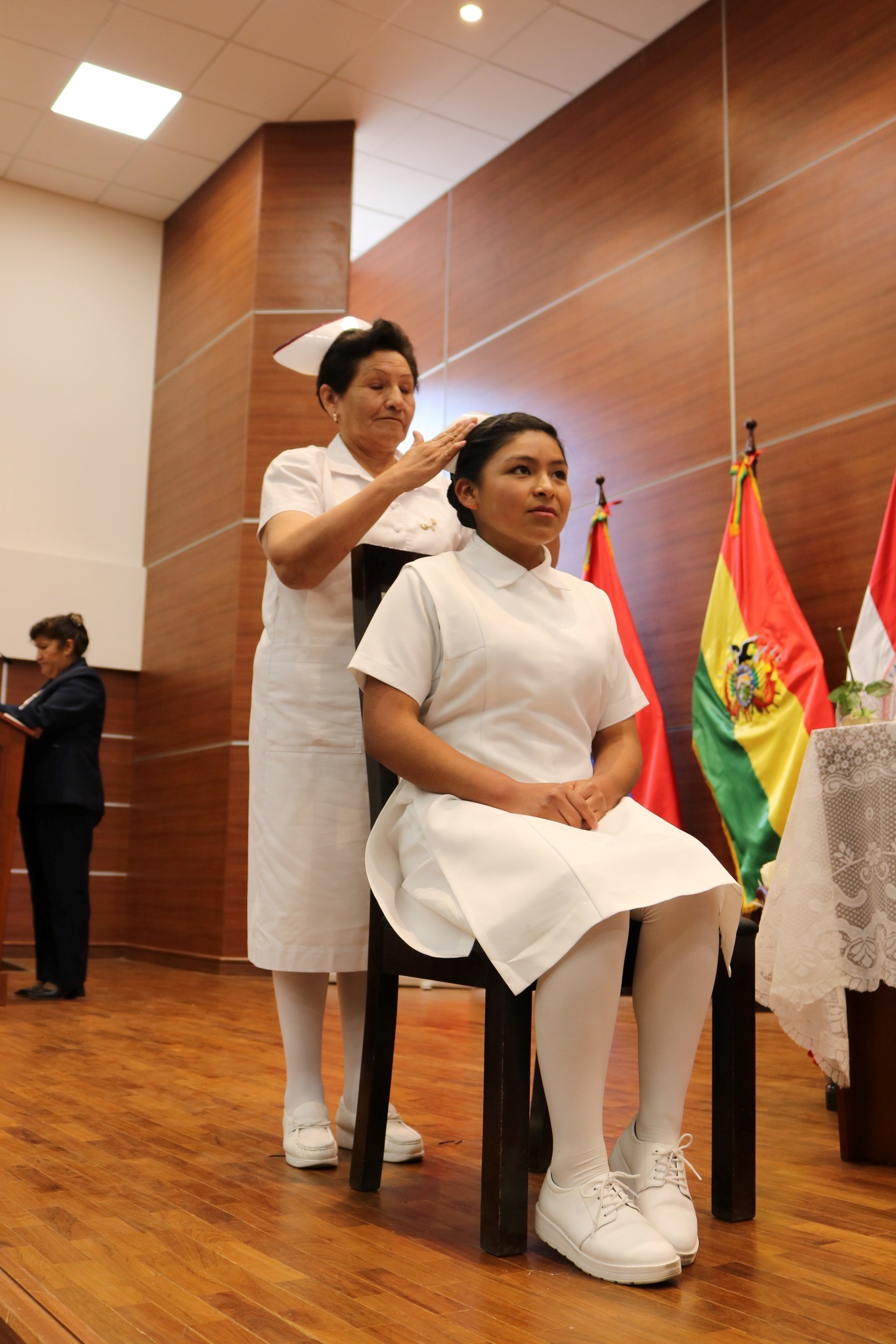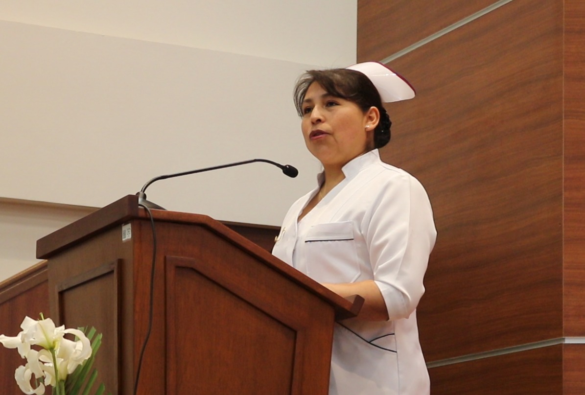 A través de un puntual discurso la Directora de Enfermería Ms.C. Tania Pinto Ucharico reconoció la importante evolución y transformaciones de esta prestigiosa institución acorde a las necesidades en el ámbito clínico como la Salud Pública.