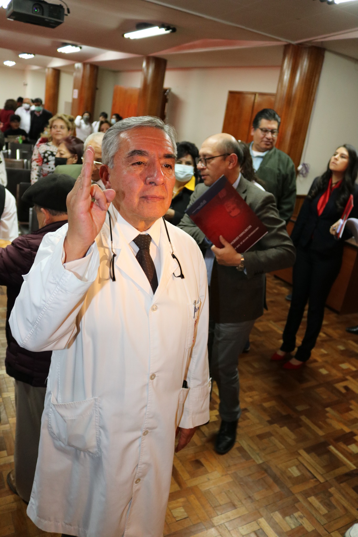 Este 6 de julio, en el solemne acto de posesión del nuevo Director de la Carrera de Medicina, Dr. Carlos Aguirre, participaron el M.Sc. Dr.Marco Aurelio Velasco Secretario General, M.Sc. Ing,Luis Ramiro Arce Salcedo, el presidente de la Asociación de Docentes de la Facultad de Medicina, Dr. Hernán Rivera, ex Decanos, la directora de la carrera de Enfermería, M.Sc. Lic. Tania Pinto Ucharico, directora de la carrera de Nutrición y Dietética, M.SC. Lic, Magdalena Jordán de Guzmán, la Directora de la carrera de Tecnología Médica, Lic. Delia Nina Huanca de Echegaray, Marinalda López Jaldin , Secretaria Ejecutiva del Centro de Estudiantes Facultativo, plantel docente, personal administrativo y comunidad universitaria.